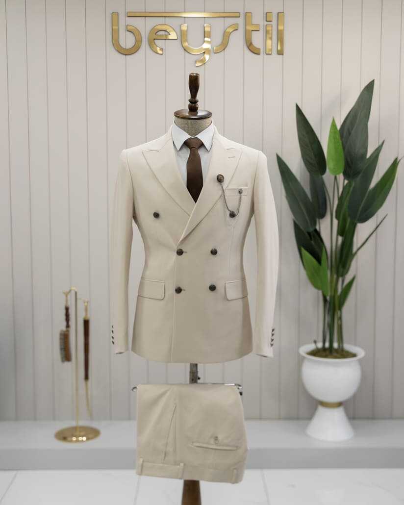 Beystil sivri yaka krem kruvaze takım, şıklığı ve konforu bir arada sunan bir tasarıma sahiptir. Slim fit kalıbı, modern görünümünüzü tamamlar ve her ortamda dikkat çekmenizi sağlar. Gardırobunuzda bu zarif takım için yer açın ve stilinizi bir üst seviyeye taşıyın!