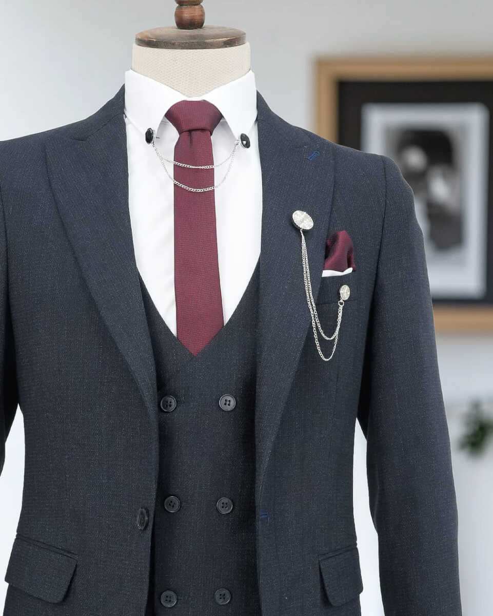 Beystil sivri yaka lacivert kırçıllı takım elbise, şıklığı ve konforu bir arada sunan bir tasarıma sahiptir. Slim fit kalıbı, modern görünümünüzü tamamlar ve her ortamda dikkat çekmenizi sağlar. Gardırobunuzda bu zarif takım için yer açın ve stilinizi bir üst seviyeye taşıyın!