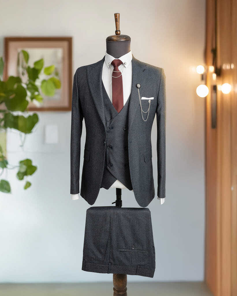 👉Ceket +Yelek + Pantolon + Gömlek + Kravat + Mendil + Yaka Zinciri: 3.500₺✨