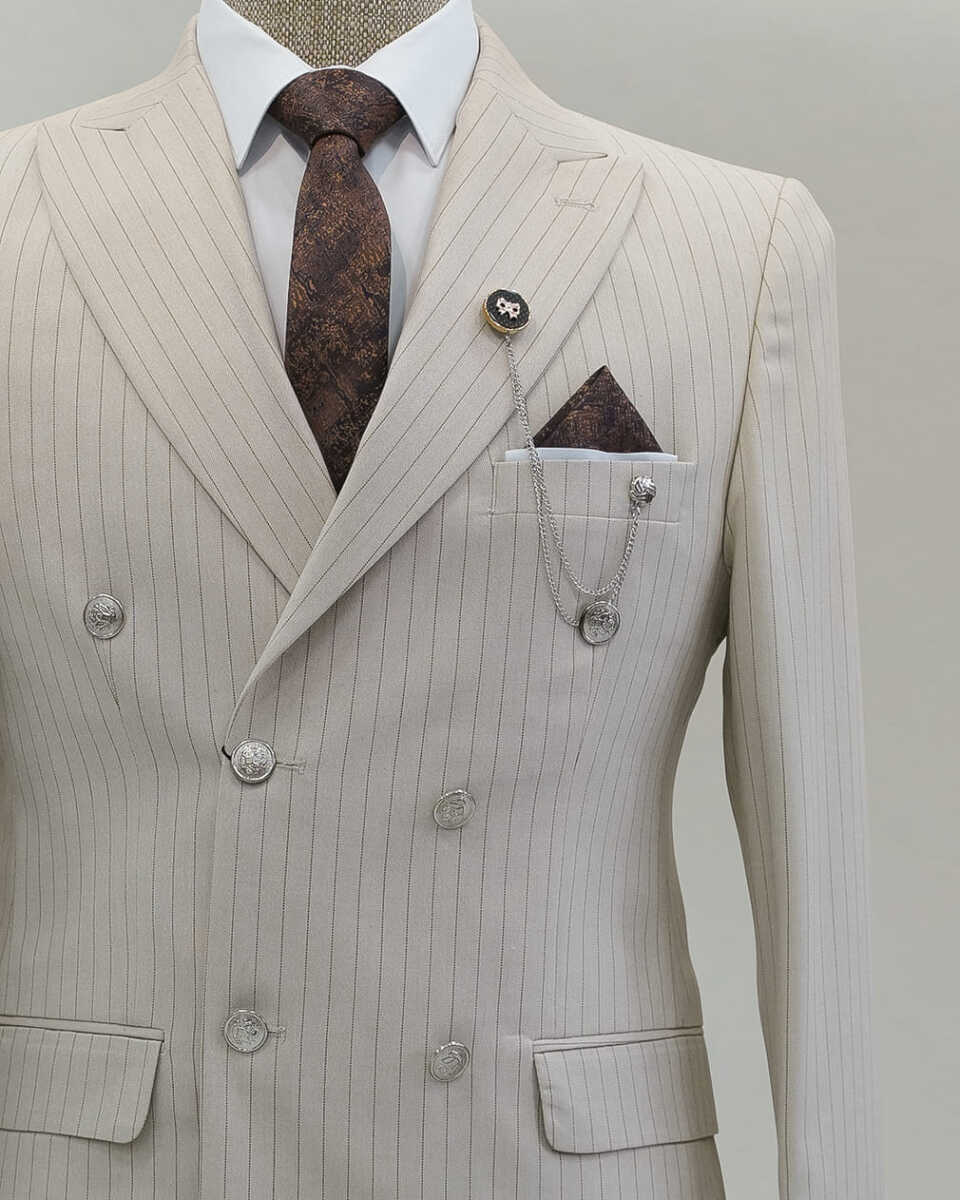 Gelince Haber VerBeystil’in krem çizgili kruvaze takımı, her güne ve her stile uygun geniş kombin seçenekleri sunar. %70 polyester ve %30 viskon içeriğiyle likralı, esnek bir yapıya sahiptir. Çift yırtmaçlı ve metal düğmeli tasarımı, sivri yaka detayıyla klasik ve modern çizgileri bir araya getirir. Günlük etkinliklerden özel günlere kadar geniş bir kullanım alanı sunar.