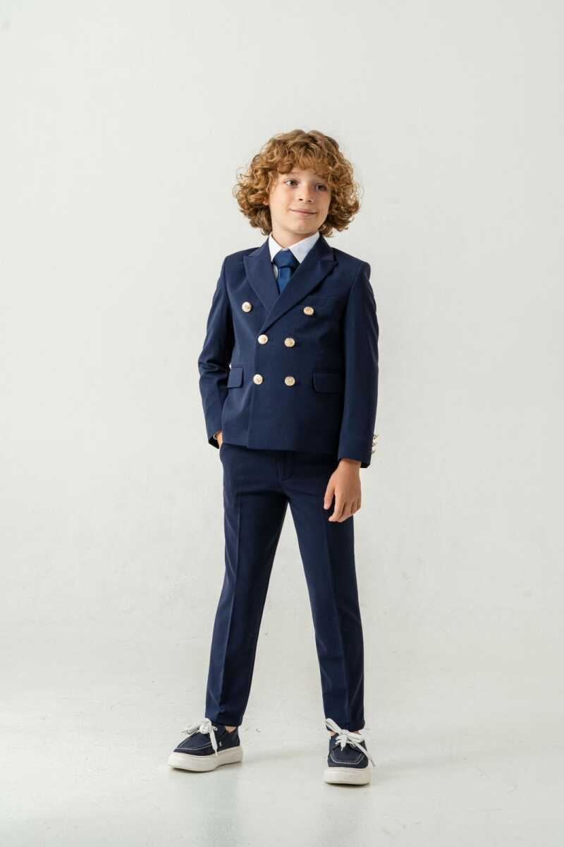 Full Set Beystil Sivri Yaka Lacivert Çocuk Kruvaze Takım Elbise