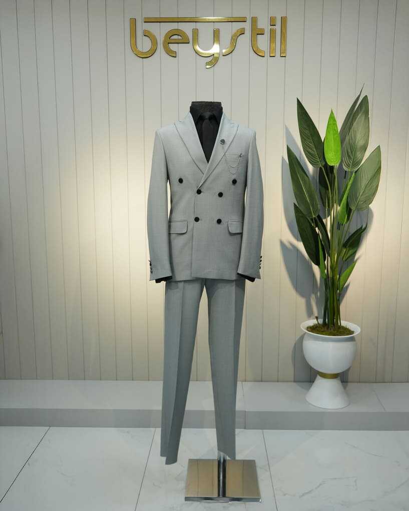 Beystil sivri yaka gri kruvaze takım elbise, şıklığı ve konforu bir arada sunan bir tasarıma sahiptir. Slim fit kalıbı, modern görünümünüzü tamamlar ve her ortamda dikkat çekmenizi sağlar. Gardırobunuzda bu zarif takım için yer açın ve stilinizi bir üst seviyeye taşıyın!
