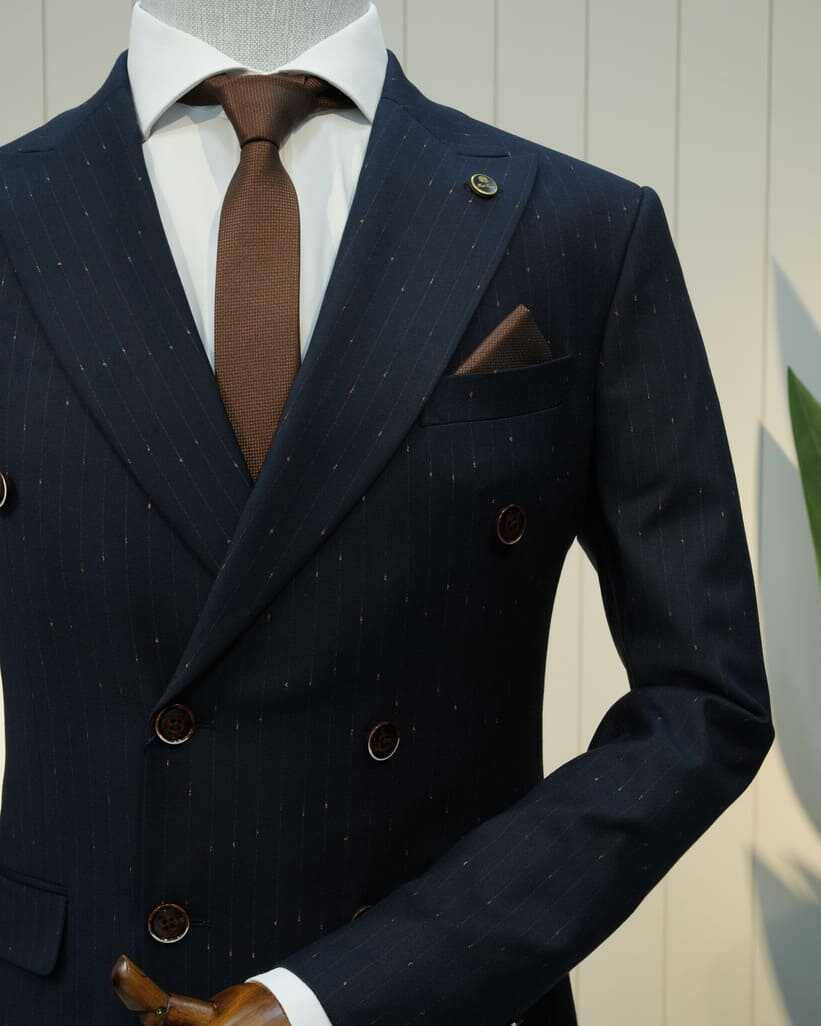 Beystil sivri yaka lacivert noktalı kruvaze takım elbise, şıklığı ve konforu bir arada sunan bir tasarıma sahiptir. Slim fit kalıbı, modern görünümünüzü tamamlar ve her ortamda dikkat çekmenizi sağlar. Gardırobunuzda bu zarif takım için yer açın ve stilinizi bir üst seviyeye taşıyın!