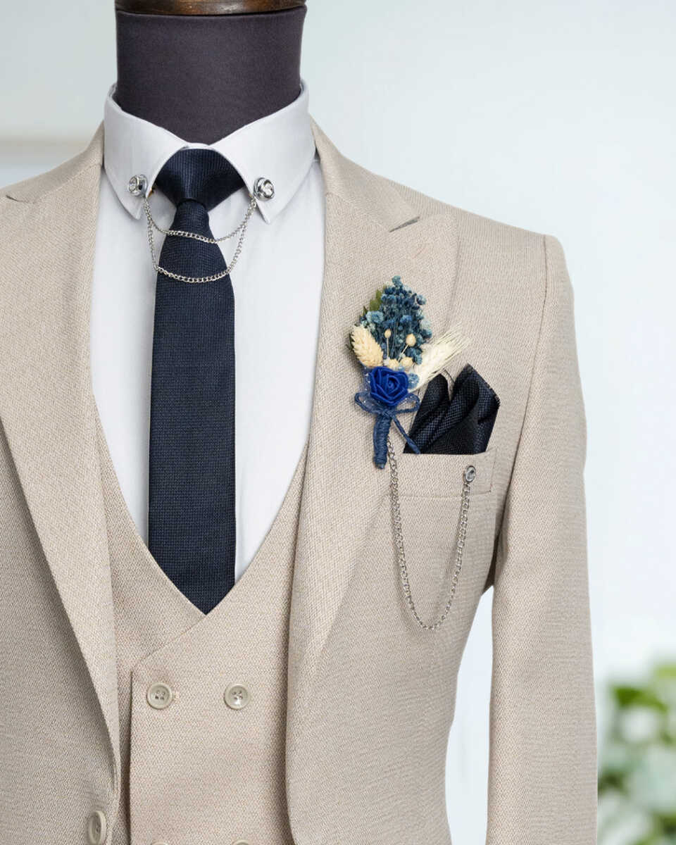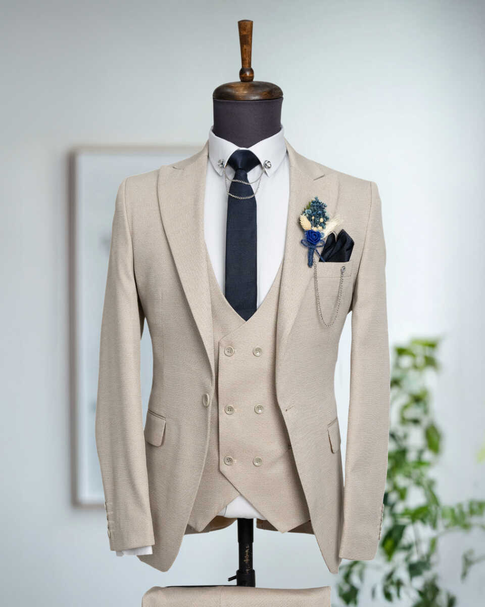 Beystil sivri yaka bej takım elbise, şıklığı ve konforu bir arada sunan bir tasarıma sahiptir. Slim fit kalıbı, modern görünümünüzü tamamlar ve her ortamda dikkat çekmenizi sağlar. Gardırobunuzda bu zarif takım için yer açın ve stilinizi bir üst seviyeye taşıyın!