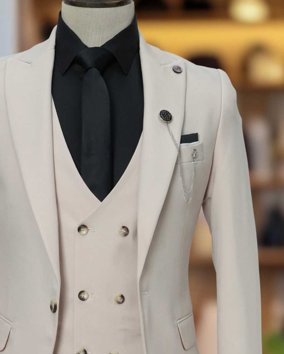 Beystil sivri yaka krem takım elbise, şıklığı ve konforu bir arada sunan bir tasarıma sahiptir. Slim fit kalıbı, modern görünümünüzü tamamlar ve her ortamda dikkat çekmenizi sağlar. Gardırobunuzda bu zarif takım için yer açın ve stilinizi bir üst seviyeye taşıyın!