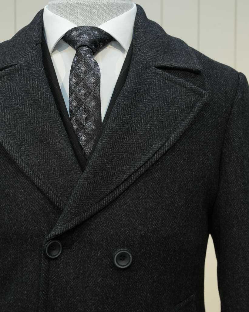 Slimfit Likralı Yün Kruvaze Kaban Siyah Renk Tiger