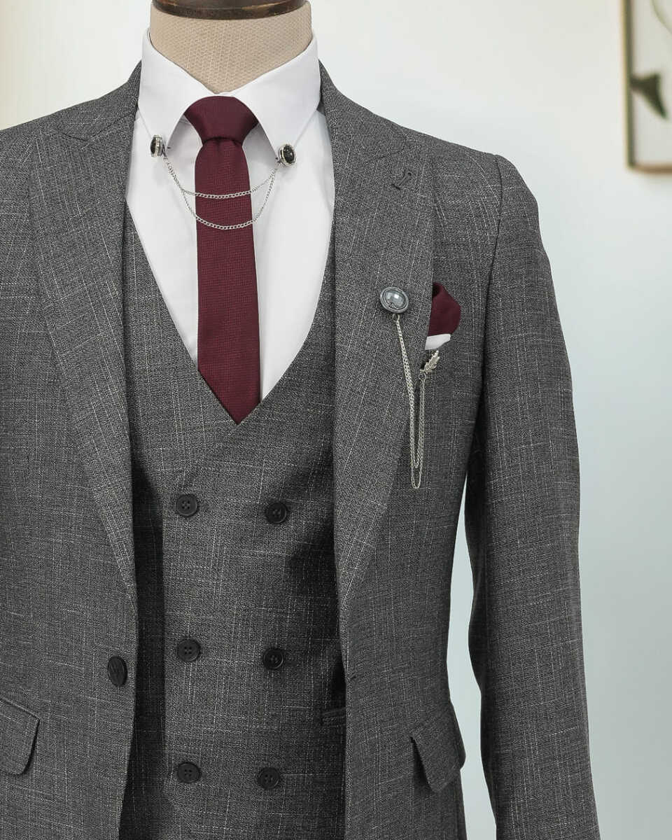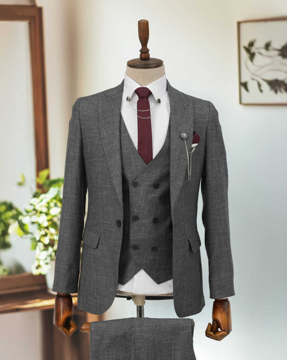 Gelince Haber VerFull Set Beystil Sivri Yaka Kırçıllı Gri Takım Elbise