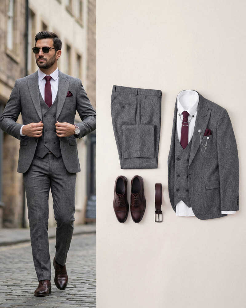 👉Ceket +Yelek + Pantolon + Gömlek + Kravat +mendil + Yaka Zinciri: 3.500₺✨